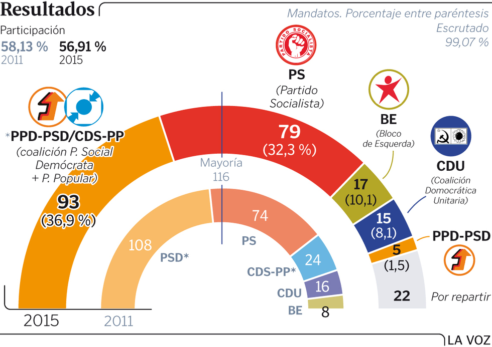 Finalmente, insistir en que el escenario posterior a las elecciones que se plantea en Portugal también es muy similar al de las Municipales y Autonómicas en España y seguramente lo pueda ser al de las Generales en nuestro país, aunque con actores y encajes diferentes. Es el escenario de la polarización política, de la ausencia de mayorías absolutas, de la necesidad del diálogo y negociación. En este sentido, será interesante ver como evolucionan las negociaciones en Portugal porque aunque algunos deseen ver inmediatamente al PAF gobernando Portugal, con Coelho manteniendo su estatus de fiel secretario de la Merkel, quizás la cosa se enquiste y ésto vaya para largo, incluidas las negociaciones para la aprobación de los Presupuestos Generales. Muchos y diversos escenarios de gobernabilidad se abren en Portugal. Nada está cerrado.