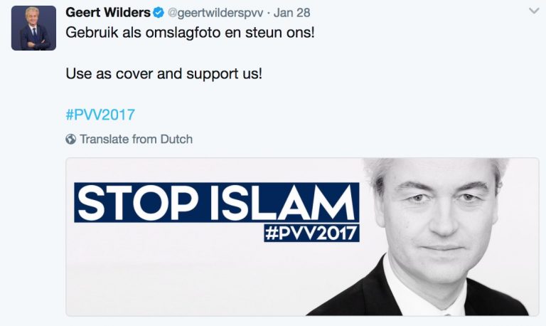 en turco y en neerlandés, o una foto junto a Marine Le Pen (quien encabeza las encuestas) en la que afirma